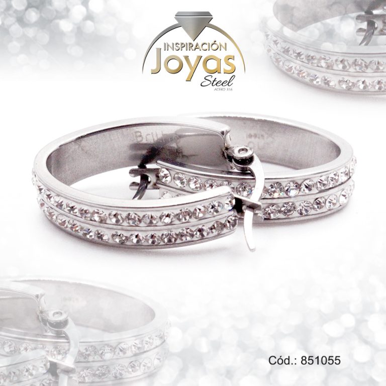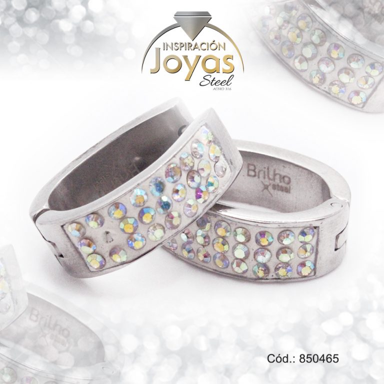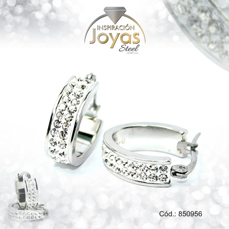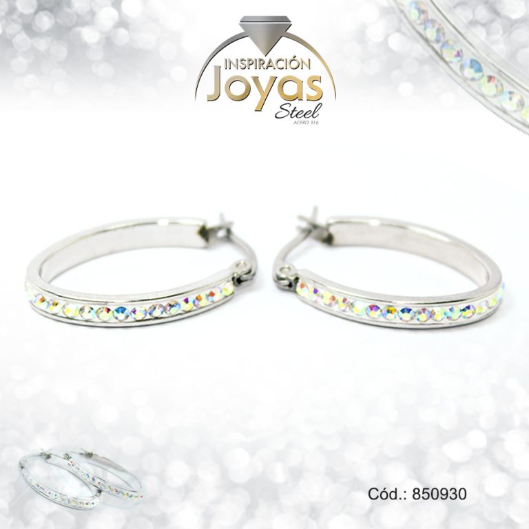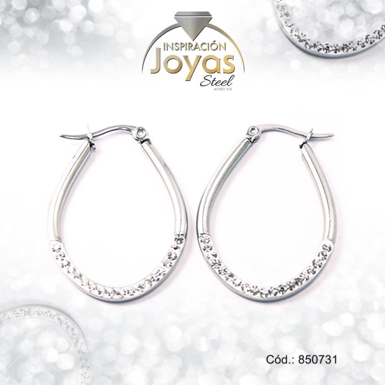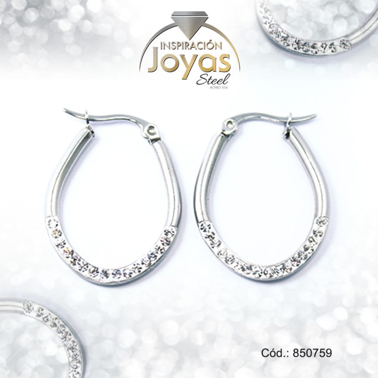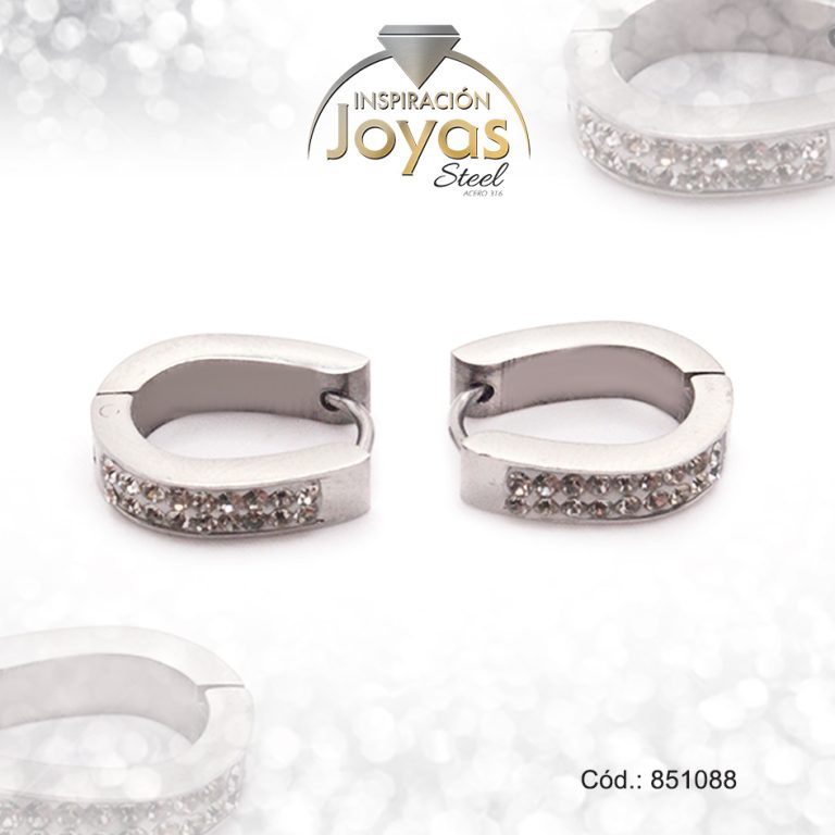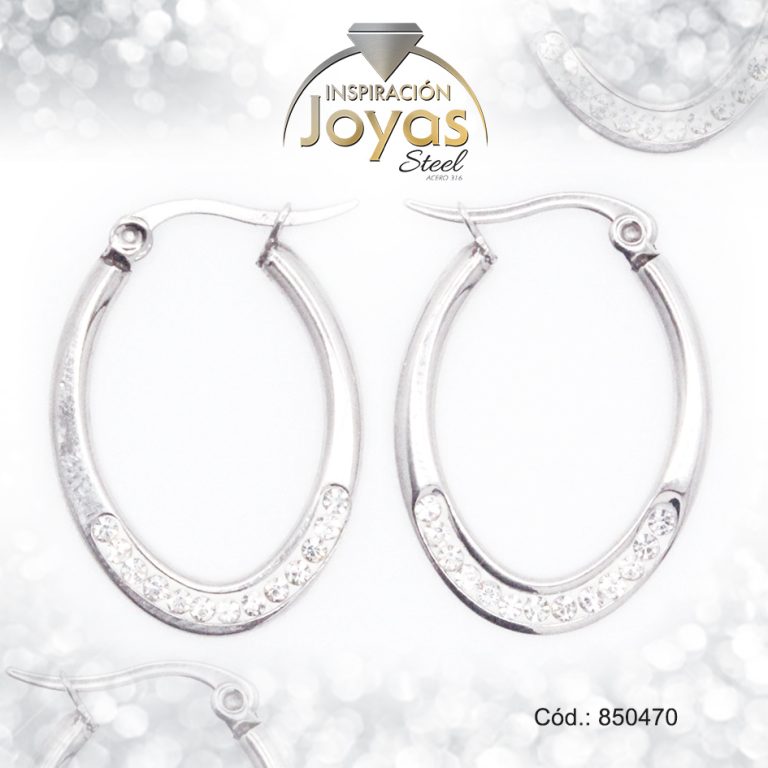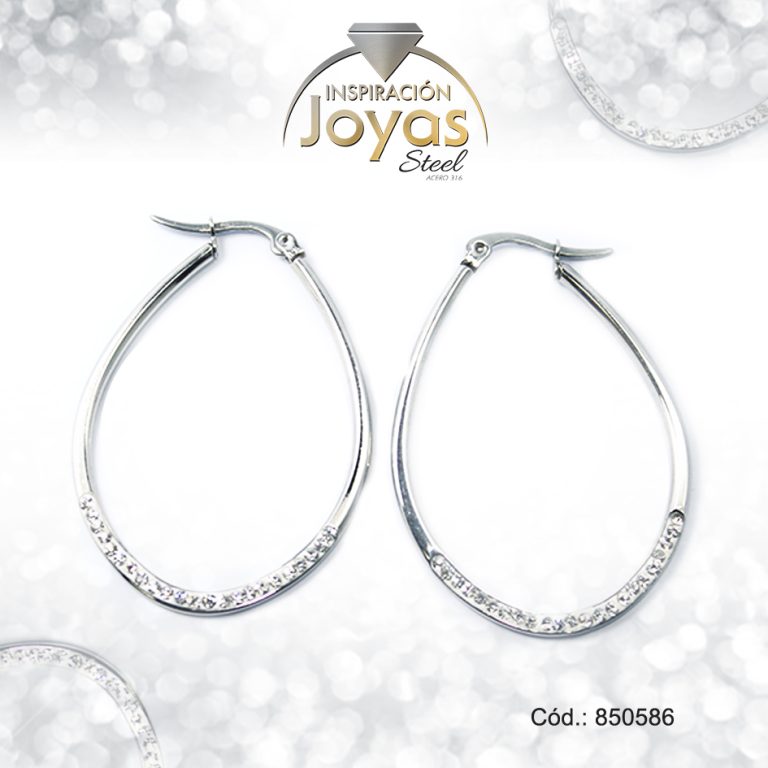 Argolla de Acero Forma Geométrica con Micro Circón Plateado Óvalo – 851055