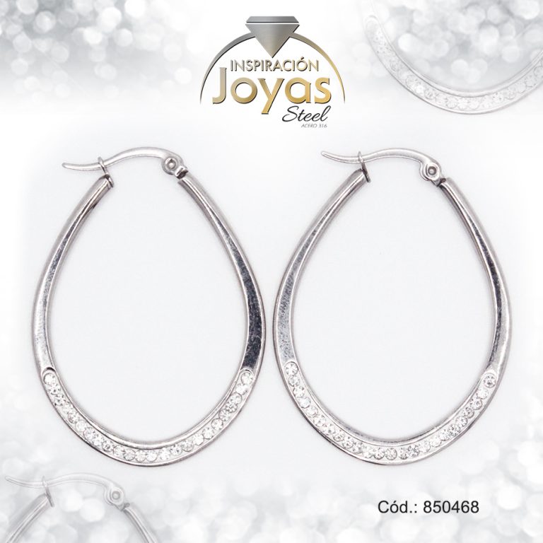 Argolla de Acero Forma Geométrica con Micro Circón Plateado Óvalo – 850468