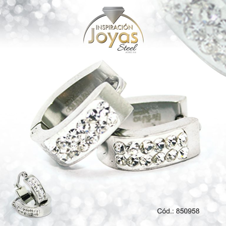 Argolla de Acero Forma Geométrica con Micro Circón Plateado Óvalo – 850958