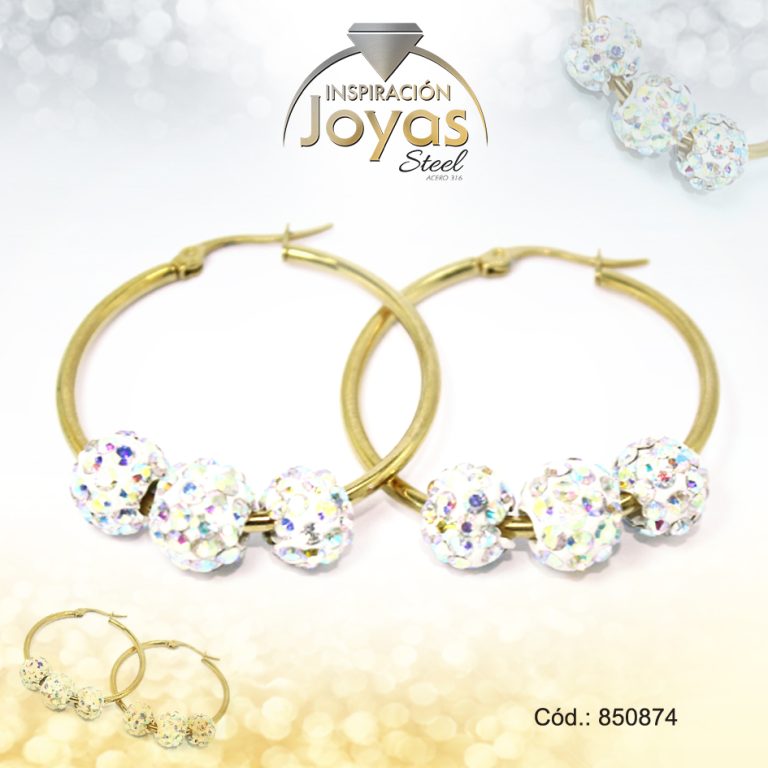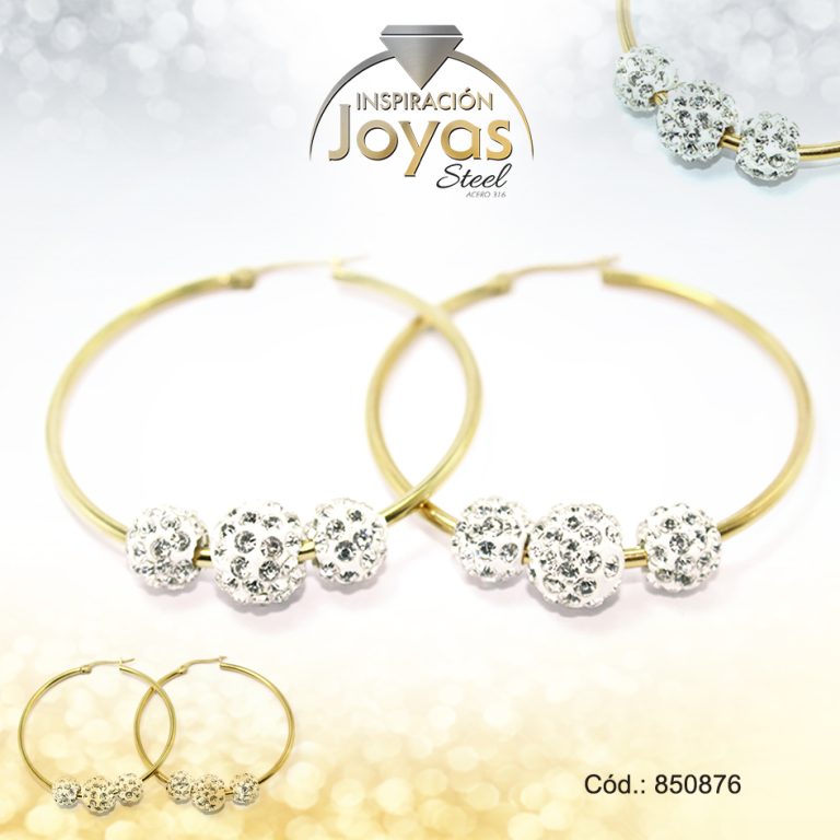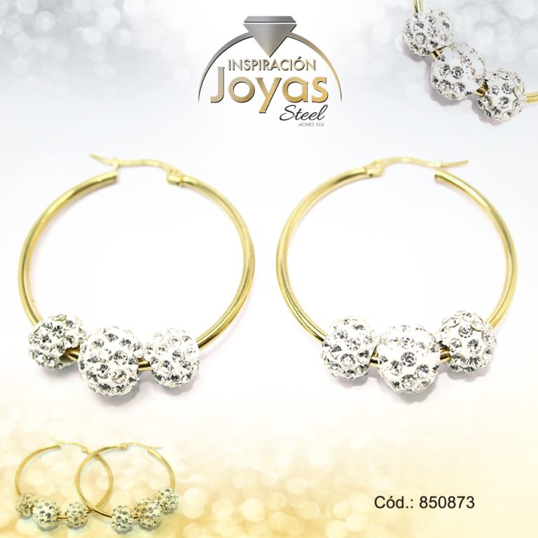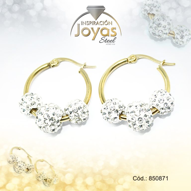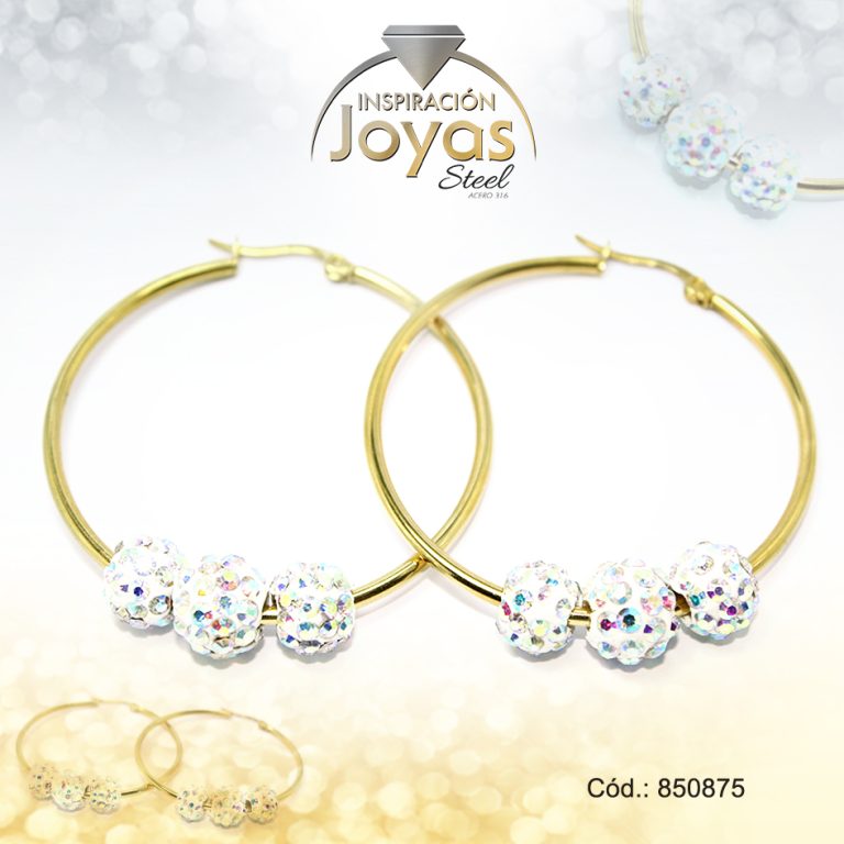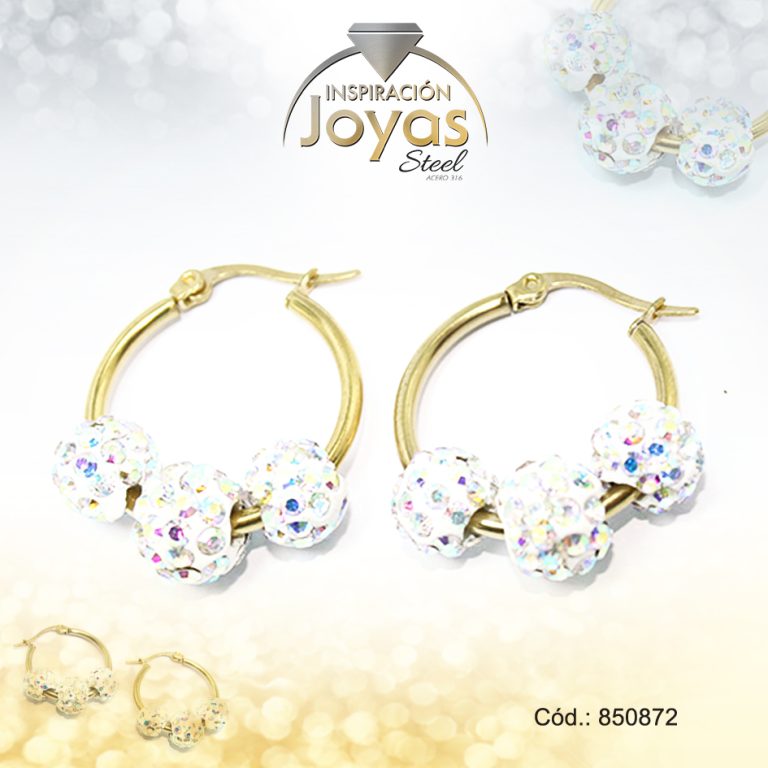 Argolla de Acero Aleación Micro Circón Dorado Círculo – 850875
