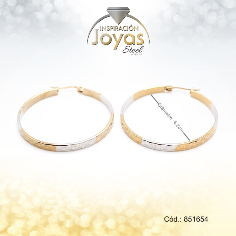Argolla Acero Tres Tonos Borde Ancho Con Repuje De Rombo Pasador V D: 4,2 Cm – 851654