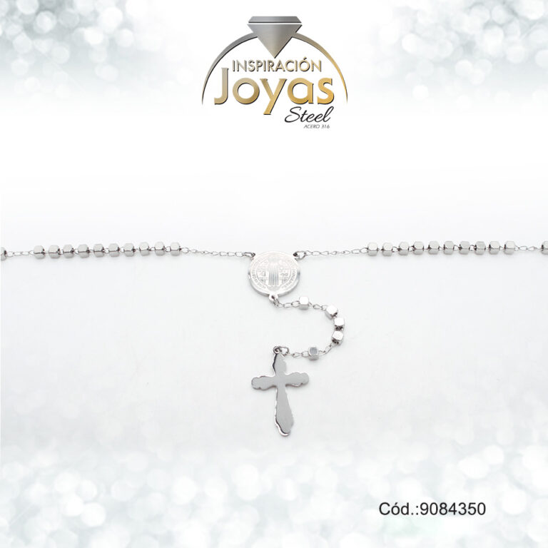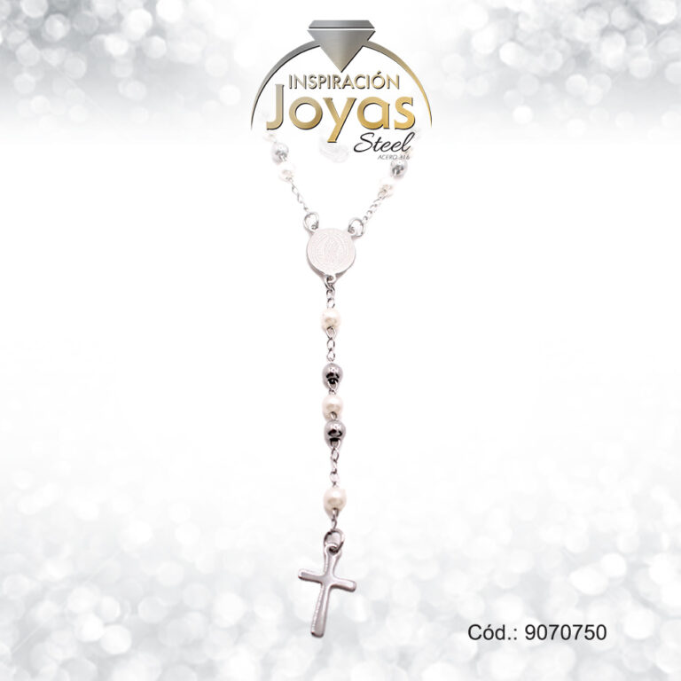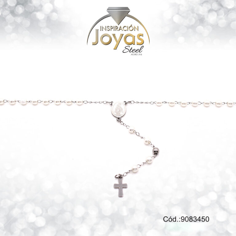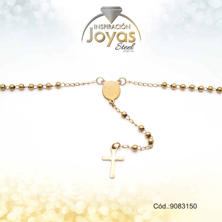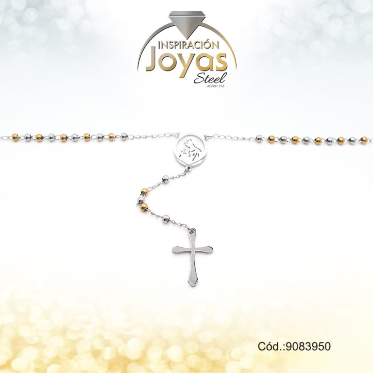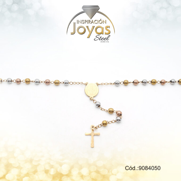 Rosario – Acero – Medalla De Virgen Maria – Esfera – Tres Tonos – L: 50Cm – 9071150