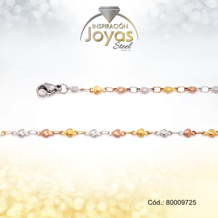 Tobillera Acero Dama Dorada – Doble Con Corazon Brillante Tornazol 25Cm – 80011025