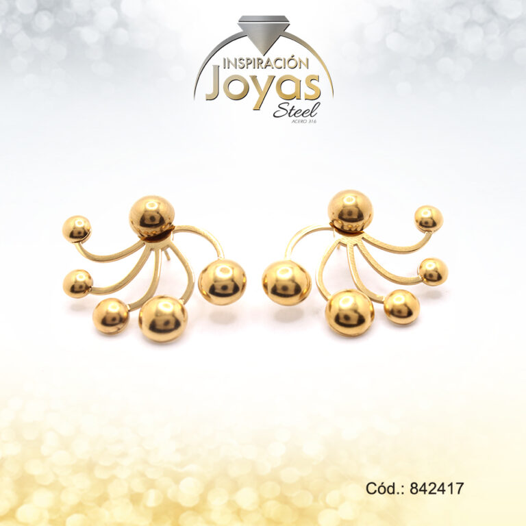 Zarcillo De Acero Dorado De Media Perla Trancadero De Maripoa Con Cinco Esfera – 842417