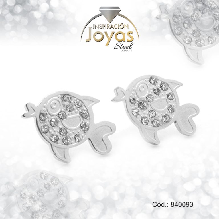 Zarcillo de Acero – Aleación Circón – Plateado – Pez – 840093