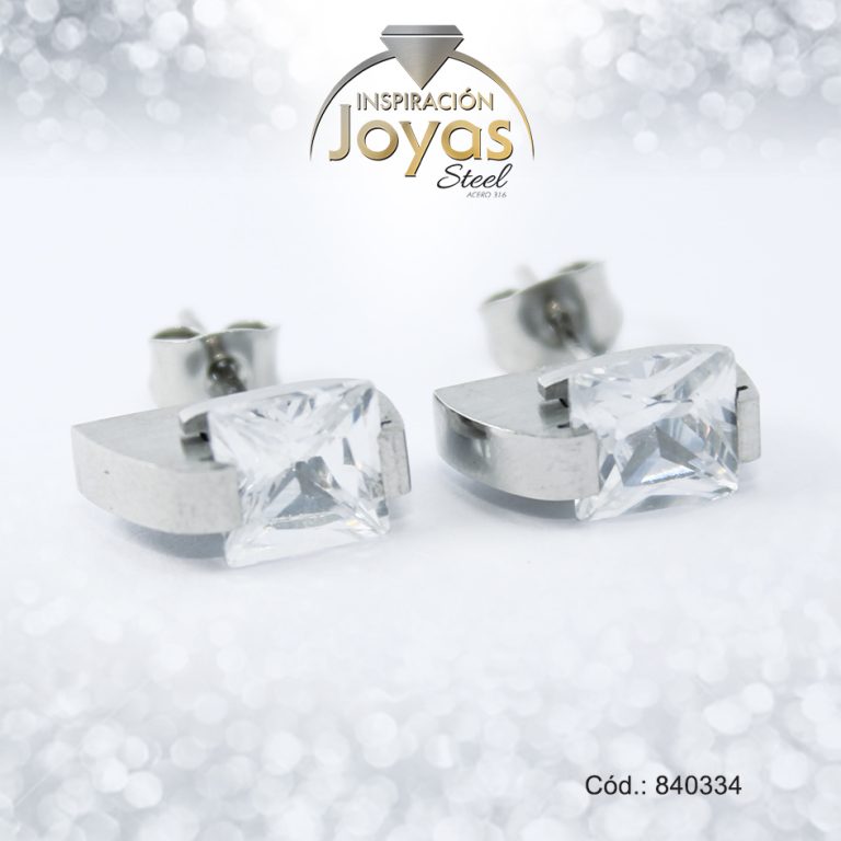 Zarcillo de Acero – Aleación Circón – Plateado – Solitario – 840334