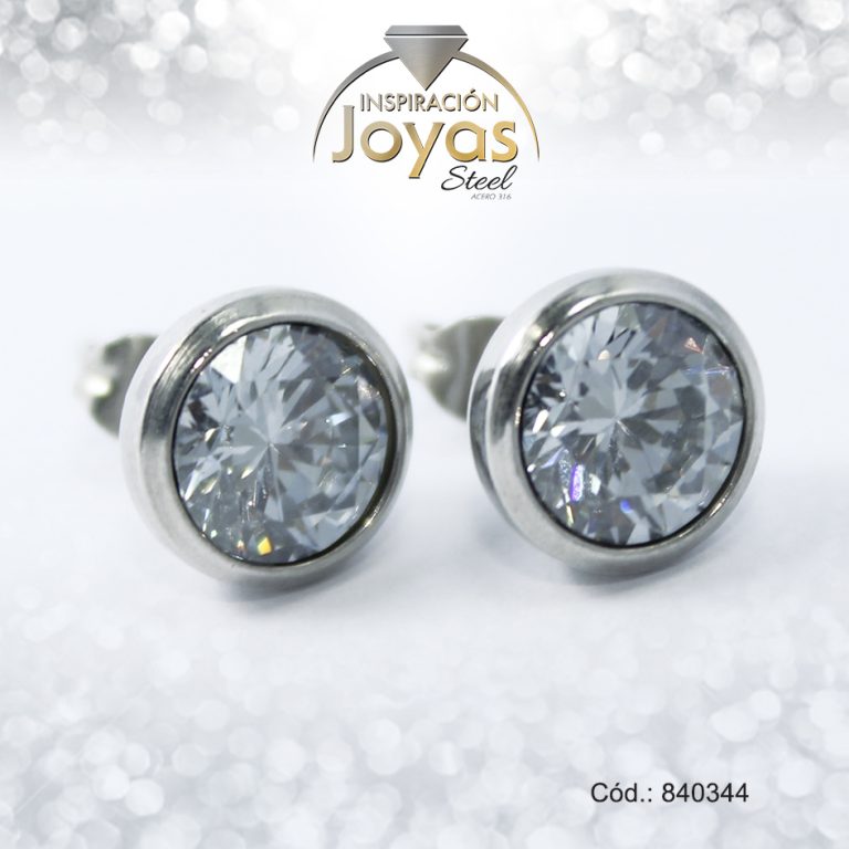 Zarcillo de Acero – Aleación Circón – Plateado – Solitario – 840344