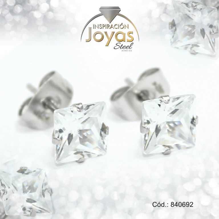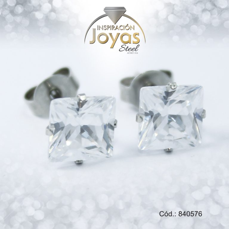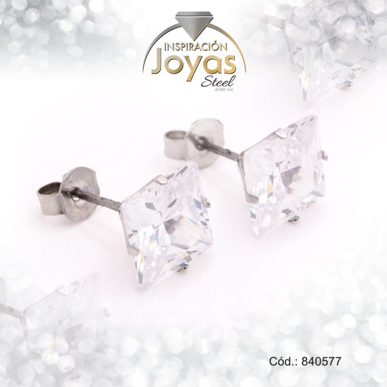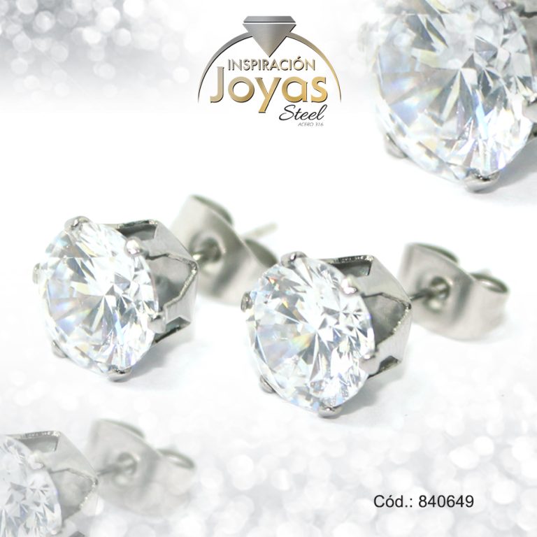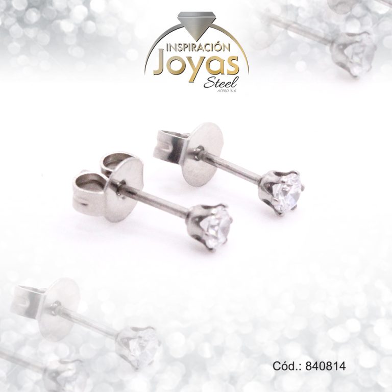 Zarcillo de Acero – Aleación Circón – Plateado – Solitario – 840648
