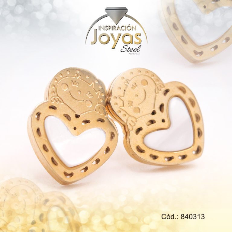 Zarcillo de Acero – Aleación Nacar – Dorado – Corazón – 840313