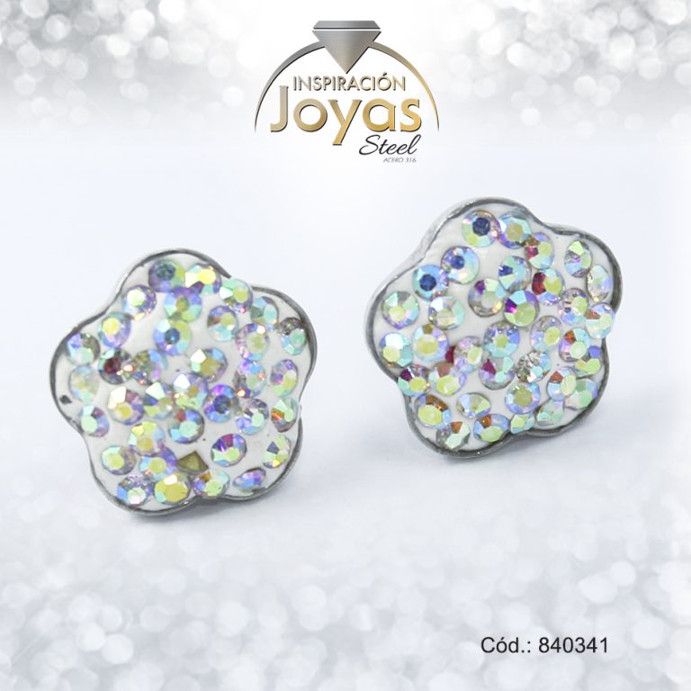 Zarcillo de Acero – Aleación Micro Circón – Plateado – Flor – 840341