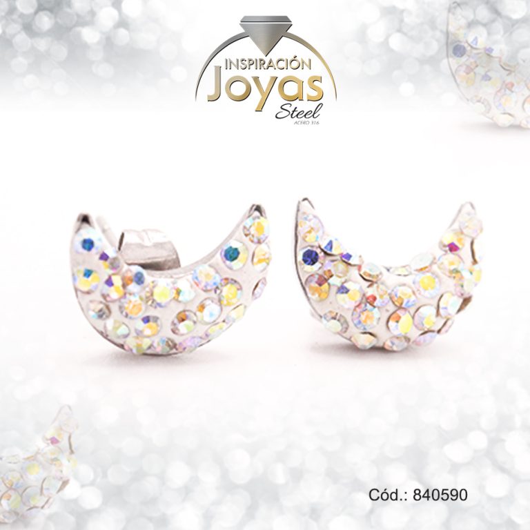 Zarcillo de Acero – Aleación Micro Circón – Plateado – Luna – 840590