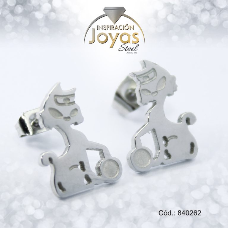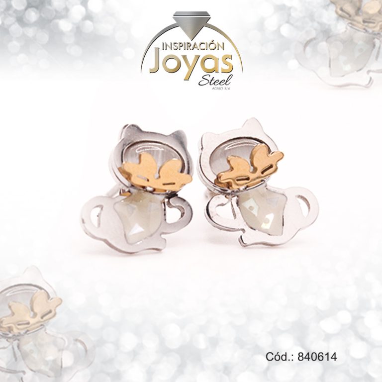 Zarcillo de Acero – Aleación Nacar – Plateado – Gato – 840614