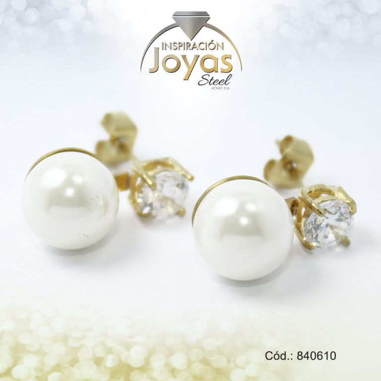 Zarcillo de Acero – Aleación Perla – Dorado – Base Circón – 840610
