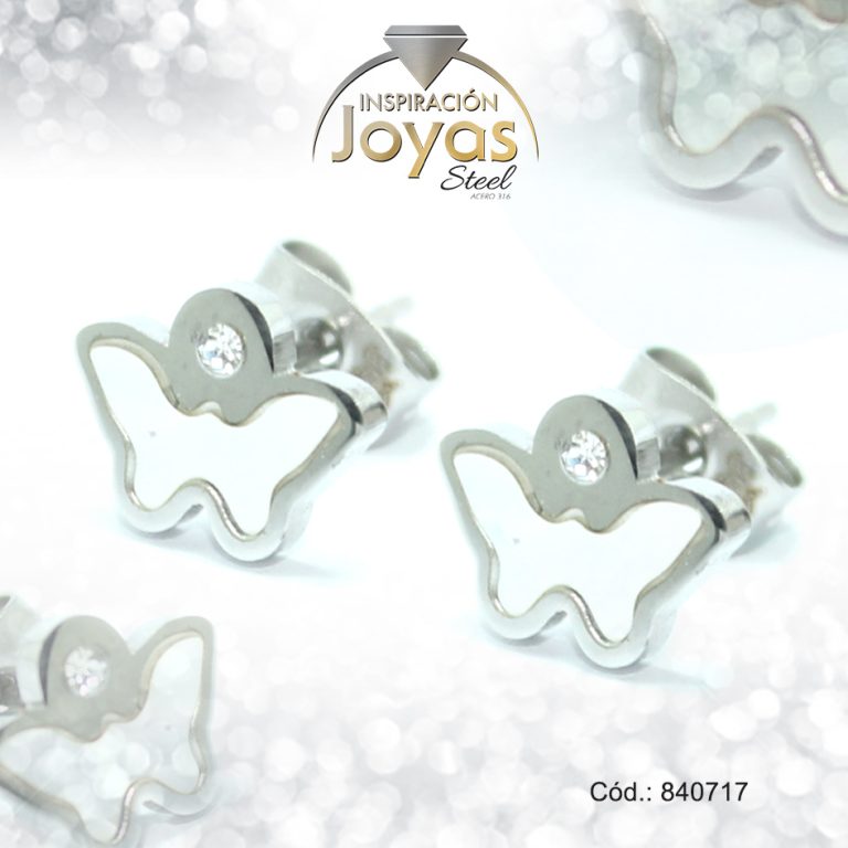 Zarcillo de Acero – Aleación Nacar – Plateado – Mariposa – 840717