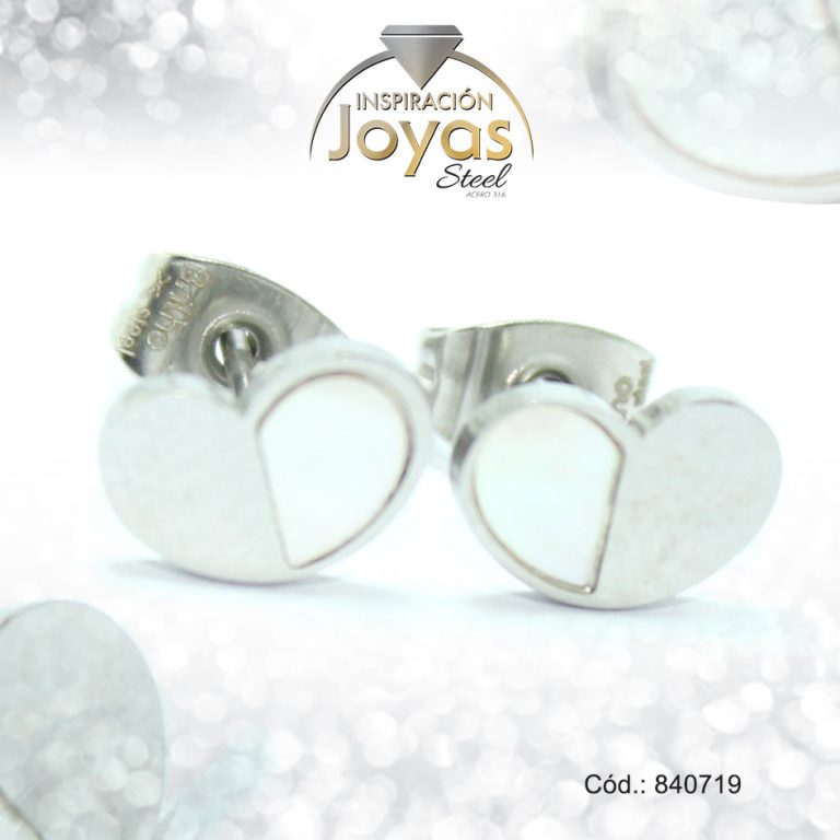 Zarcillo de Acero – Aleación Nacar – Plateado – Corazón – 840721