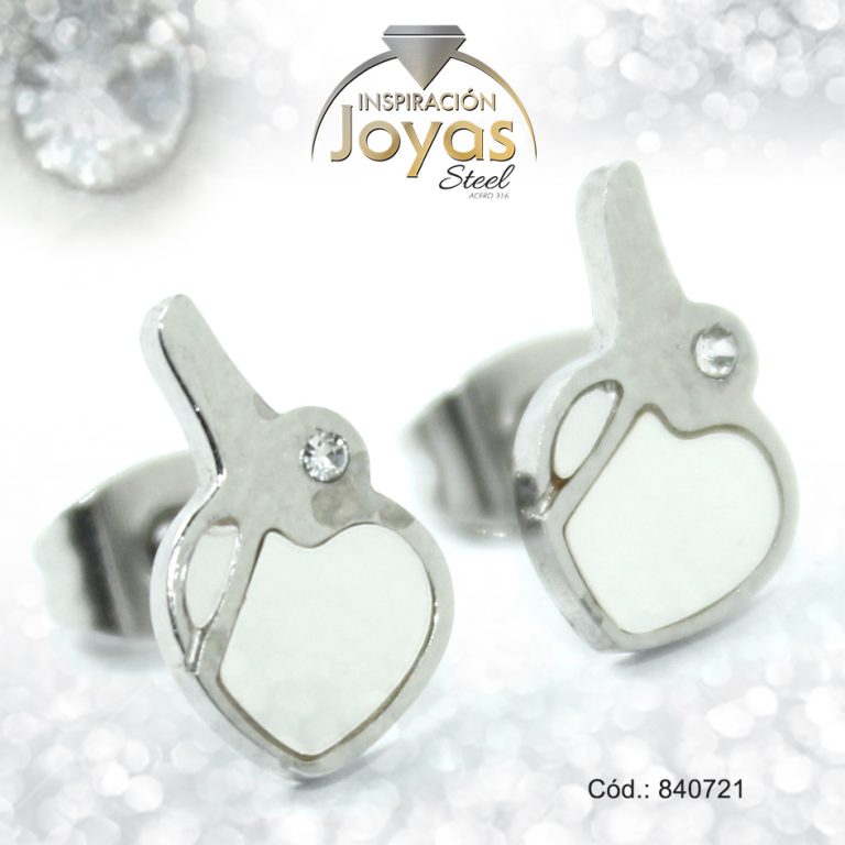 Zarcillo de Acero – Aleación Nacar – Plateado – Corazón – 840719