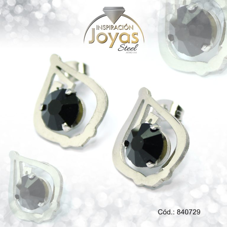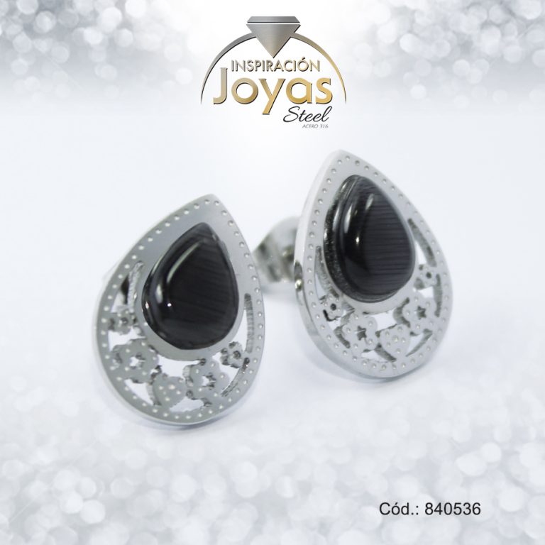 Zarcillo de Acero – Aleación Piedra – Plateado – Gota Negro – 840729