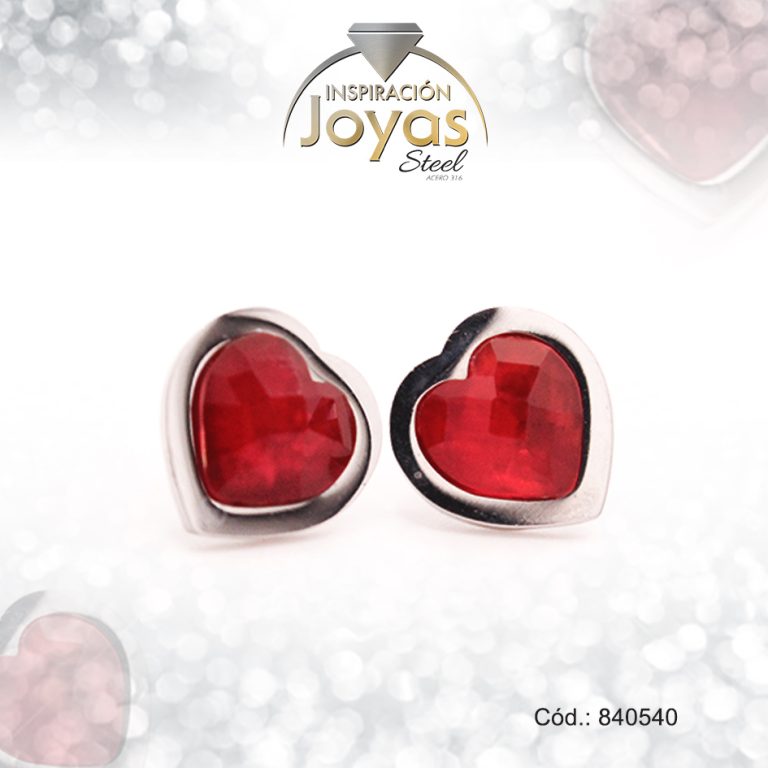 Zarcillo de Acero – Aleación Piedra – Plateado – Corazón Rojo – 840830