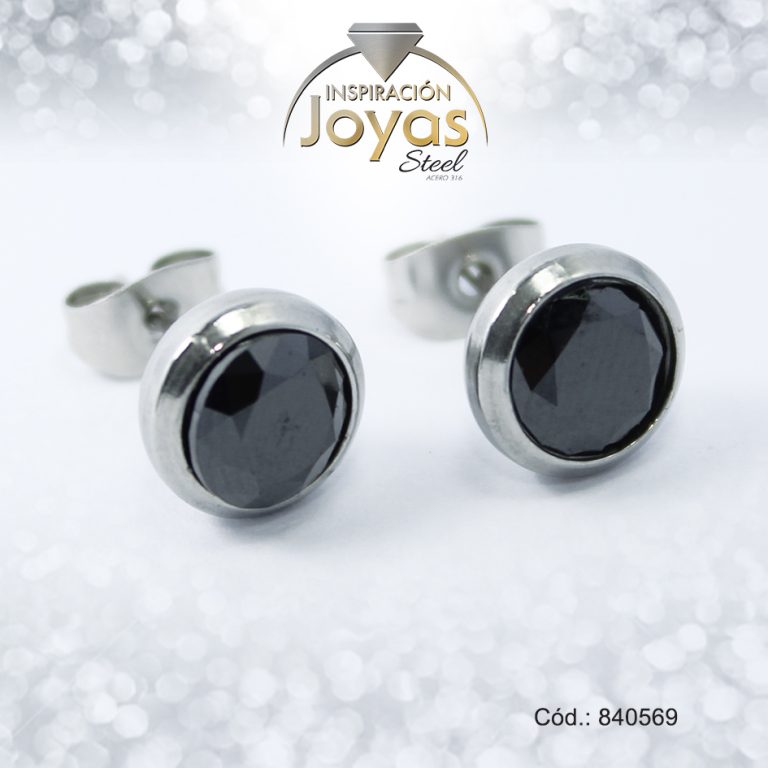 Zarcillo de Acero – Aleación Piedra – Plateado – Solitario Negro – 840534