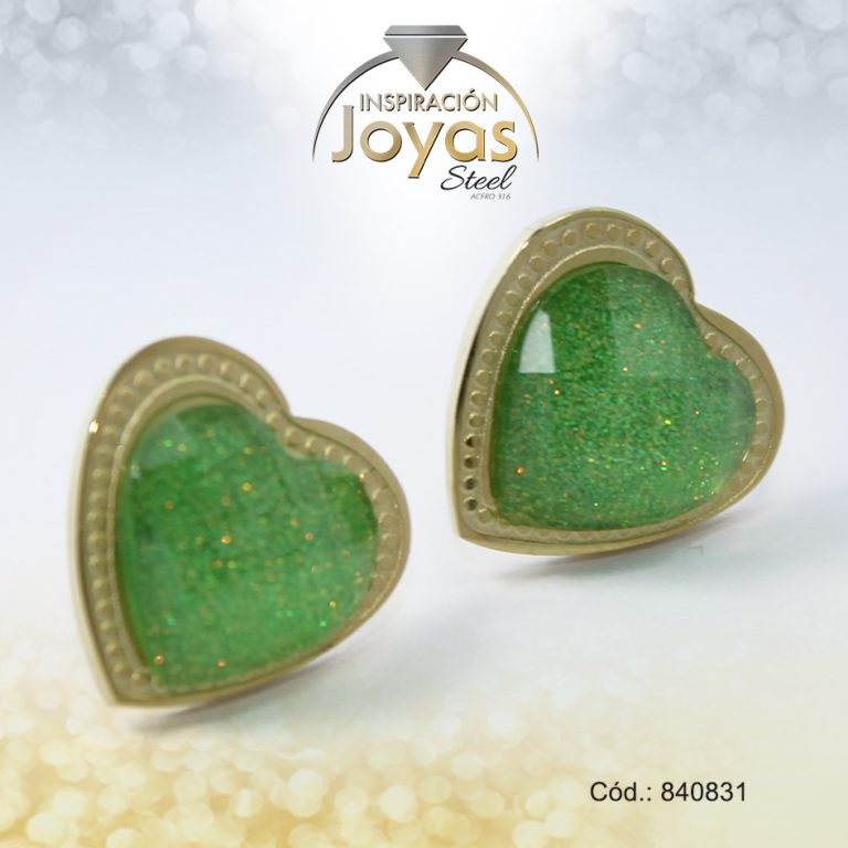 Zarcillo de Acero – Aleación Piedra – Plateado – Corazón Verde – 840831