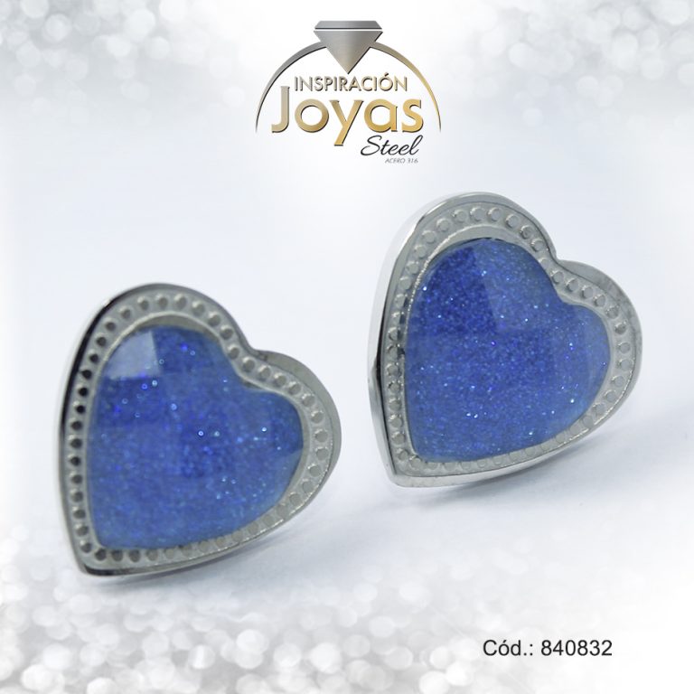 Zarcillo de Acero – Aleación Piedra – Plateado – Corazón Azul – 840832