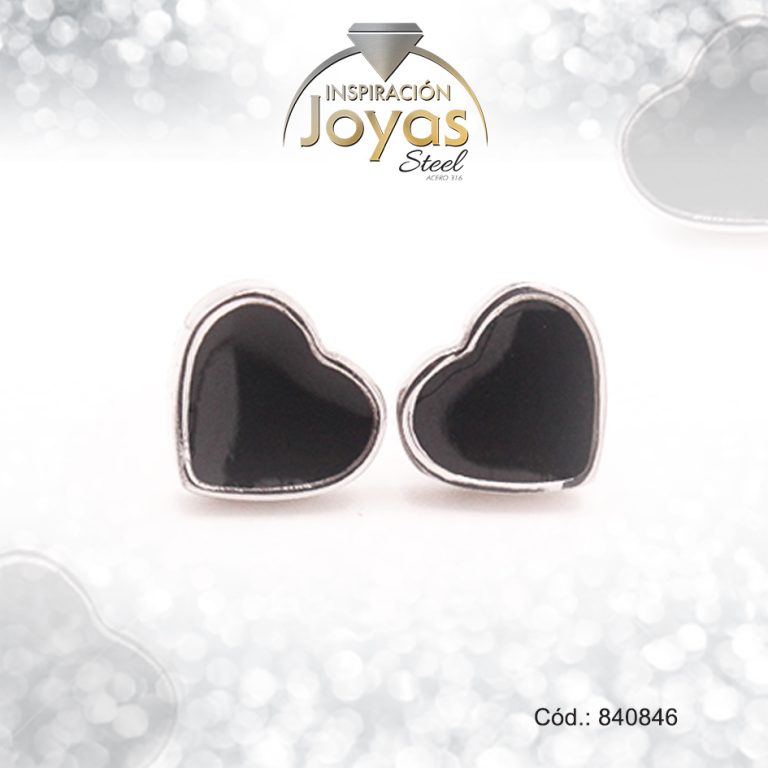 Zarcillo de Acero – Aleación Piedra – Plateado – Corazón Negro – 840846