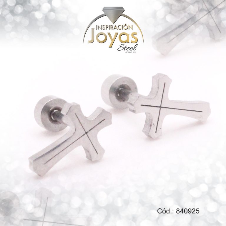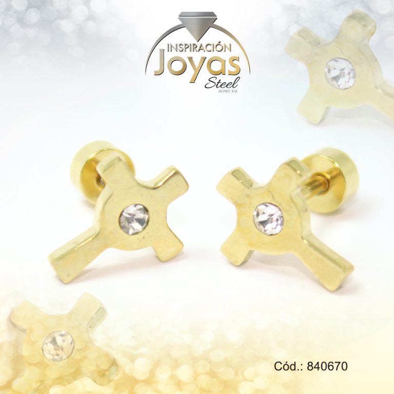 Zarcillo de Acero – Bebé Circón – Dorado – Cruz – 840670