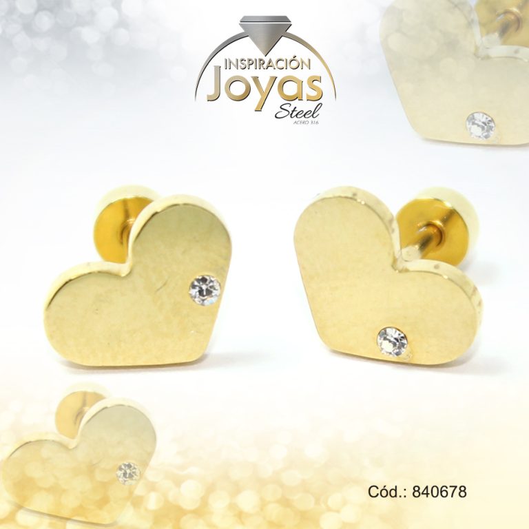 Zarcillo de Acero – Bebé Circón – Dorado – Corazón – 840678