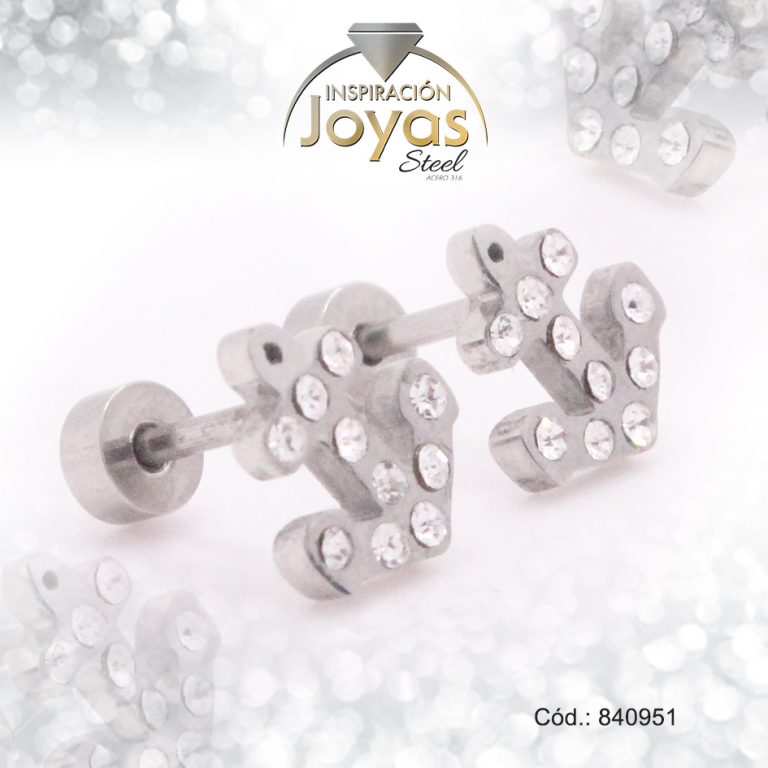 Zarcillo de Acero – Bebé Circón – Plateado – Ancla – 840951