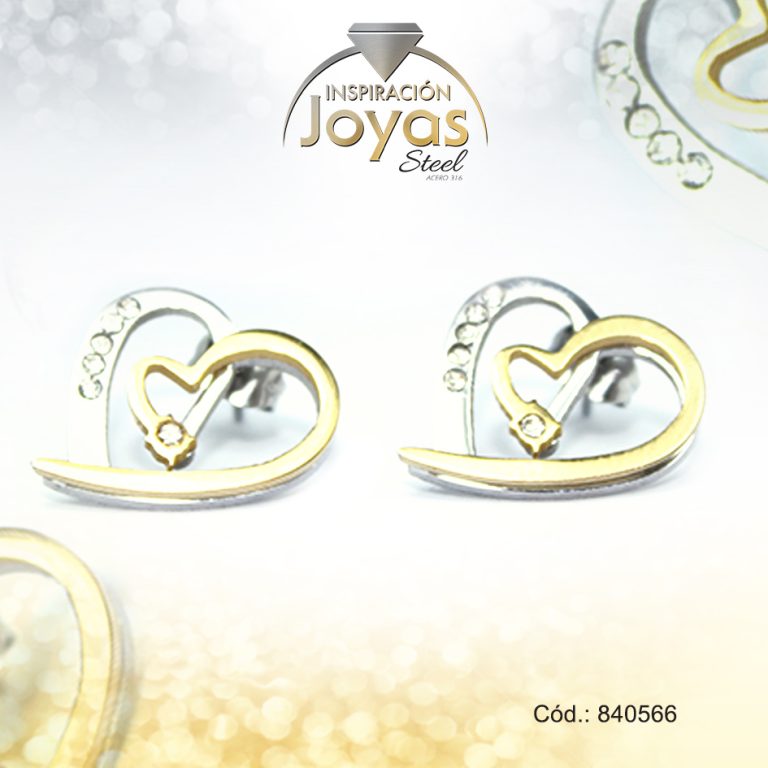 Zarcillo de Acero – Aleación Circón – 2 Tonos – Corazón – 840566