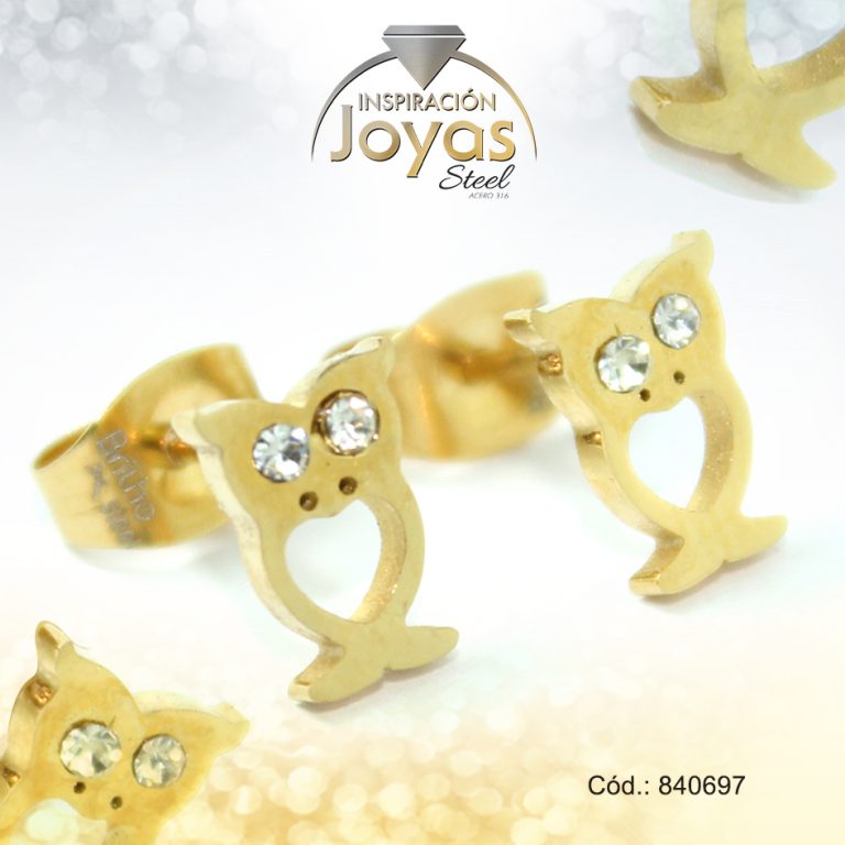 Zarcillo de Acero – Aleación Circón – Dorado – Buho – 840697