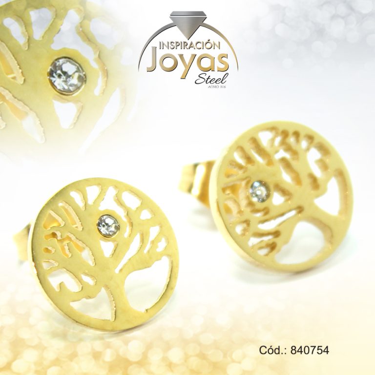 Zarcillo de Acero – Aleación Circón – Dorado – Árbol – 840754