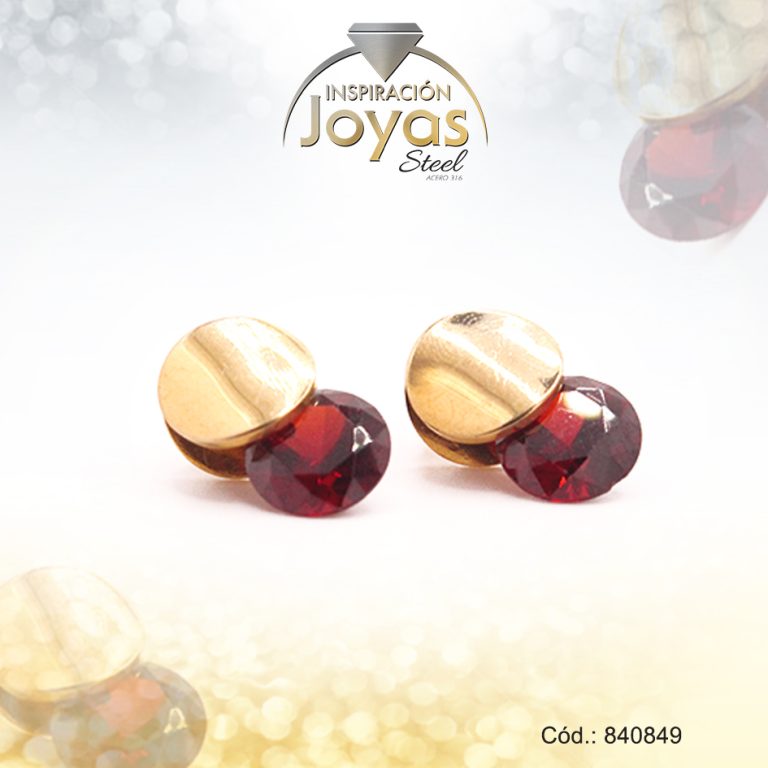 Zarcillo de Acero – Aleación Circón – Dorado – Círculo Granate – 840849