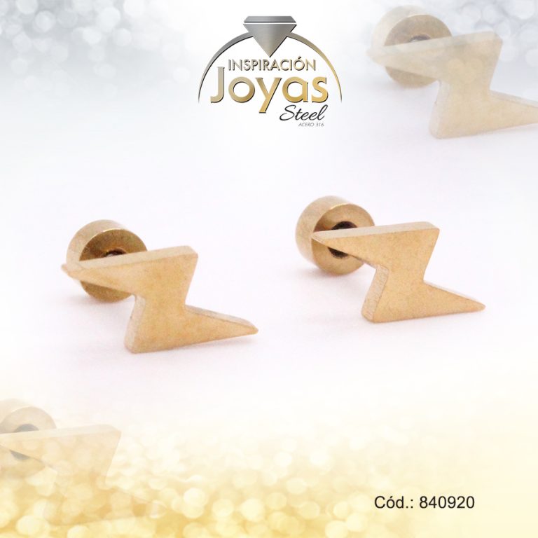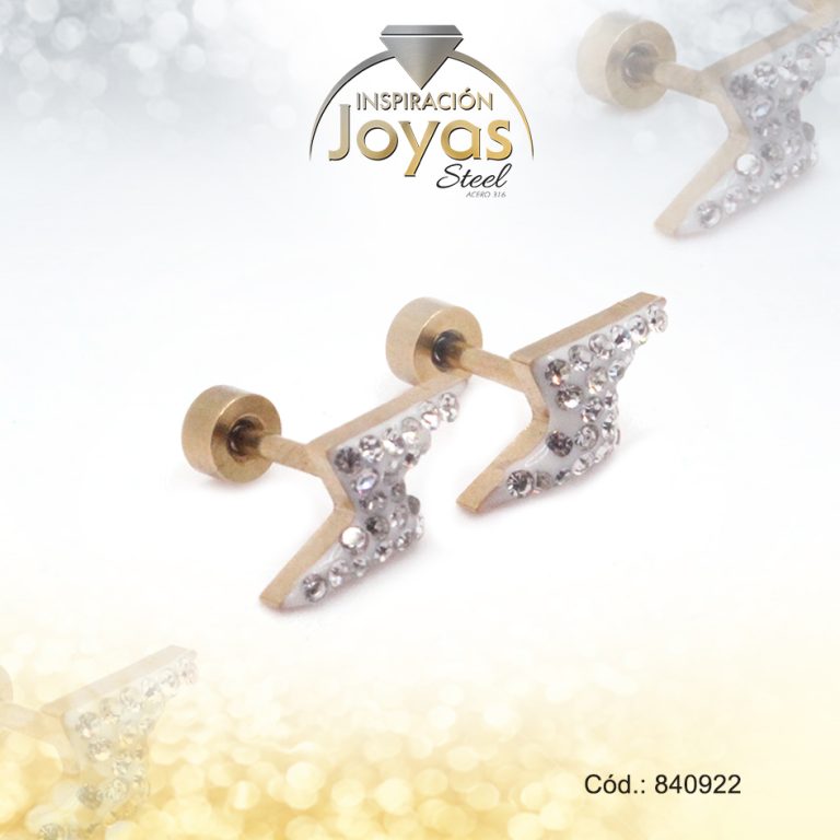 Zarcillo de Acero – Bebé Micro Circón – Dorado – Rayo – 840922