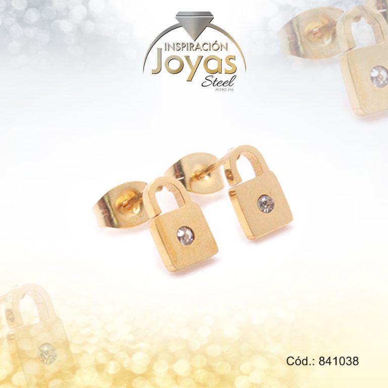 Zarcillo de Acero – Aleación Circón – Dorado – Candado – 841038