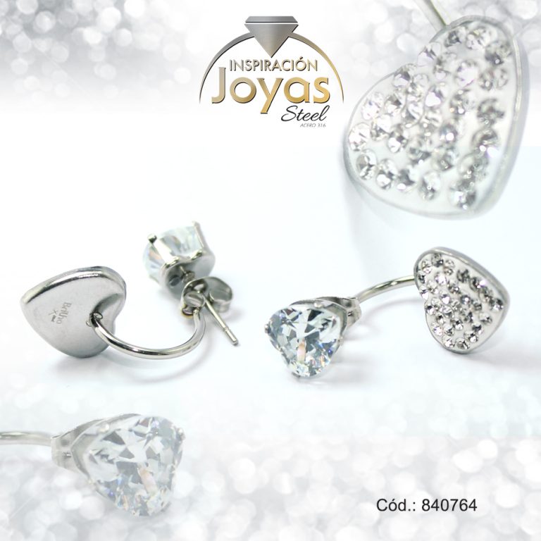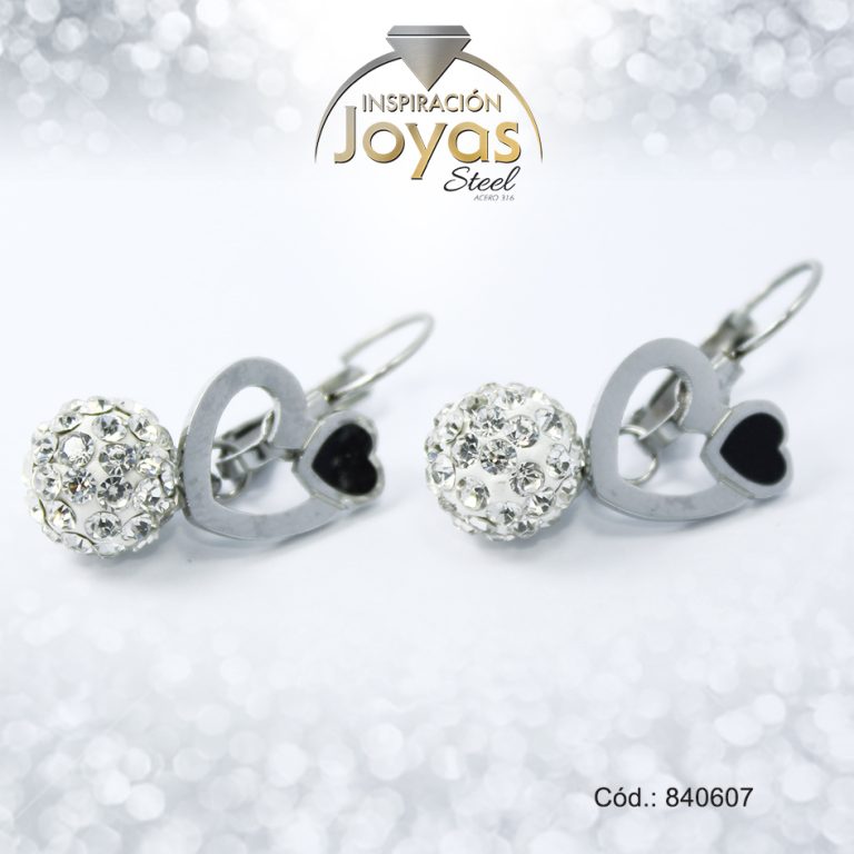 Zarcillo de Acero Colgante Micro Circón Plateado Corazón – 840764
