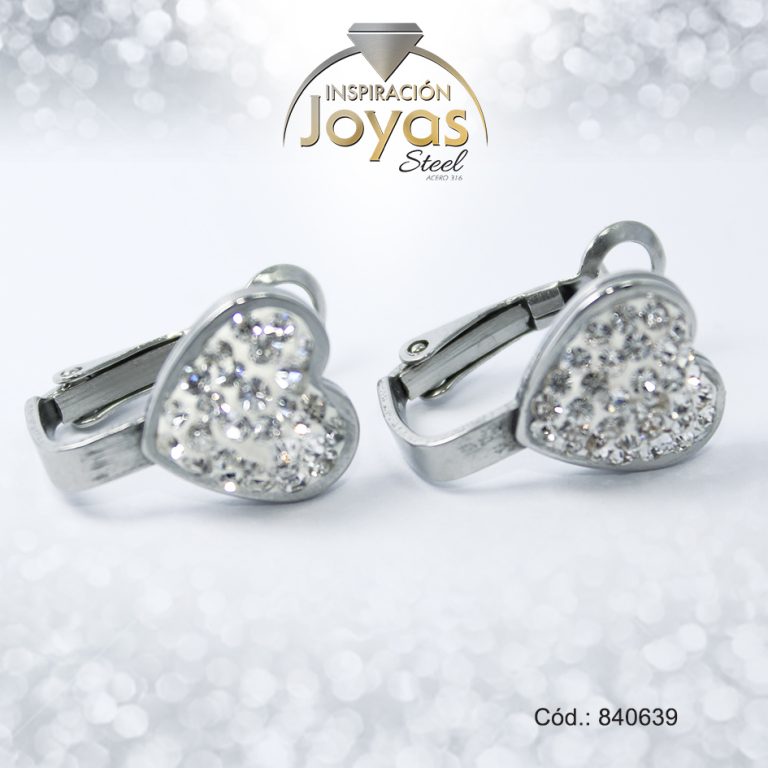 Zarcillo de Acero Colgante Micro Circón Plateado Corazón – 840639