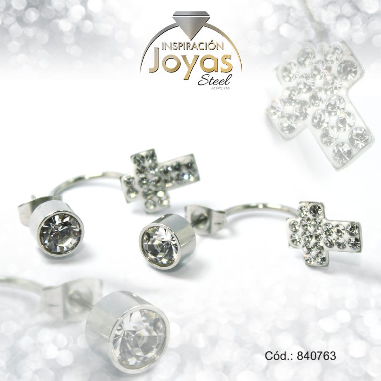 Zarcillo de Acero Colgante Micro Circón Plateado Cruz – 840763