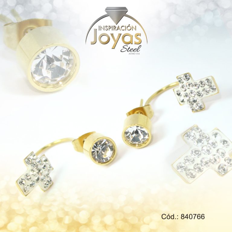 Zarcillo de Acero Colgante Micro Circón Dorado Cruz – 840766