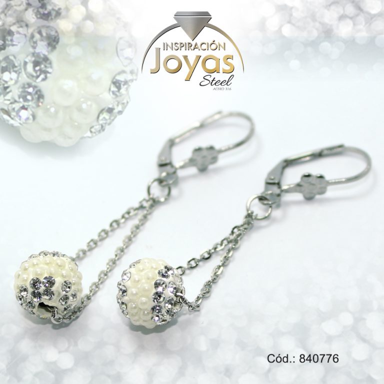 Zarcillo de Acero Colgante Micro Circón Plateado Esfera – 840776