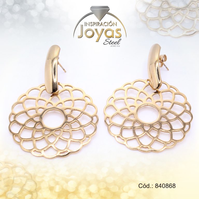 Zarcillo de Acero Colgante Micro Circón Dorado Corazón – 840765