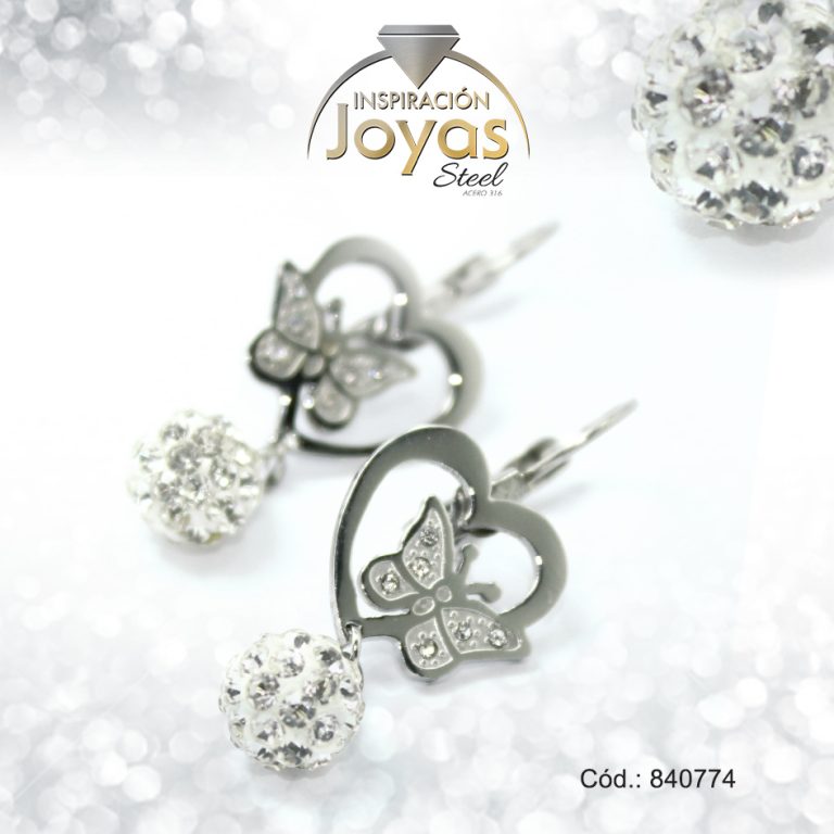 Zarcillo de Acero Colgante Micro Circón Plateado Mariposa – 840774