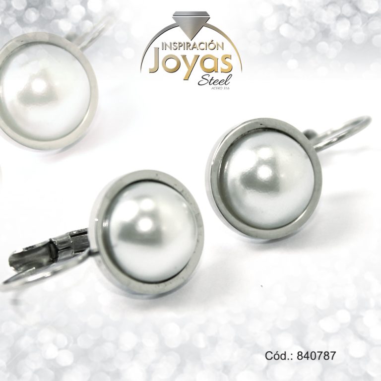 Zarcillo de Acero Colgante Perla Plateado Círculo – 840787
