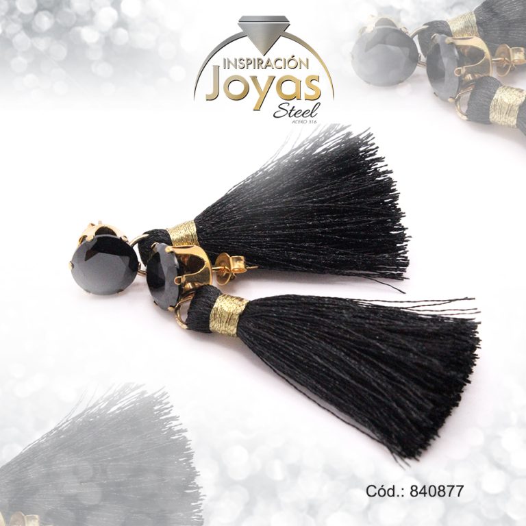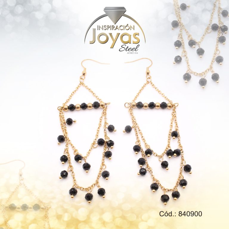 Zarcillo de Acero Colgante Piedra Dorado Barra Negro – 840871
