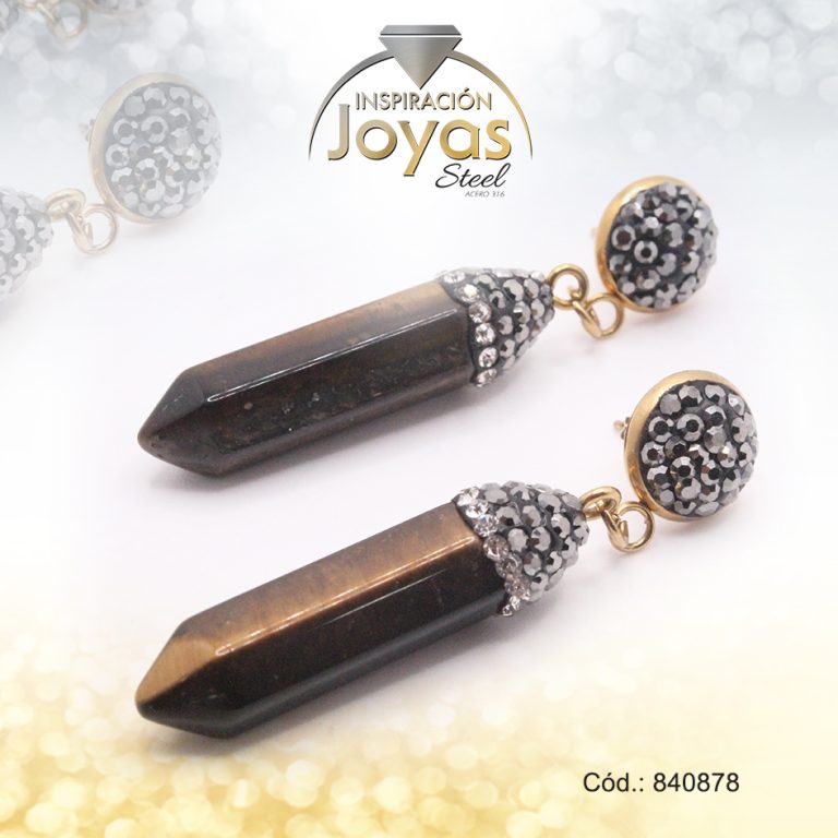 Zarcillo de Acero Colgante Piedra Dorado Brocha – 840877
