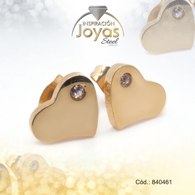Zarcillo de Acero – Aleación Circón – Dorado – Corazón – 840461