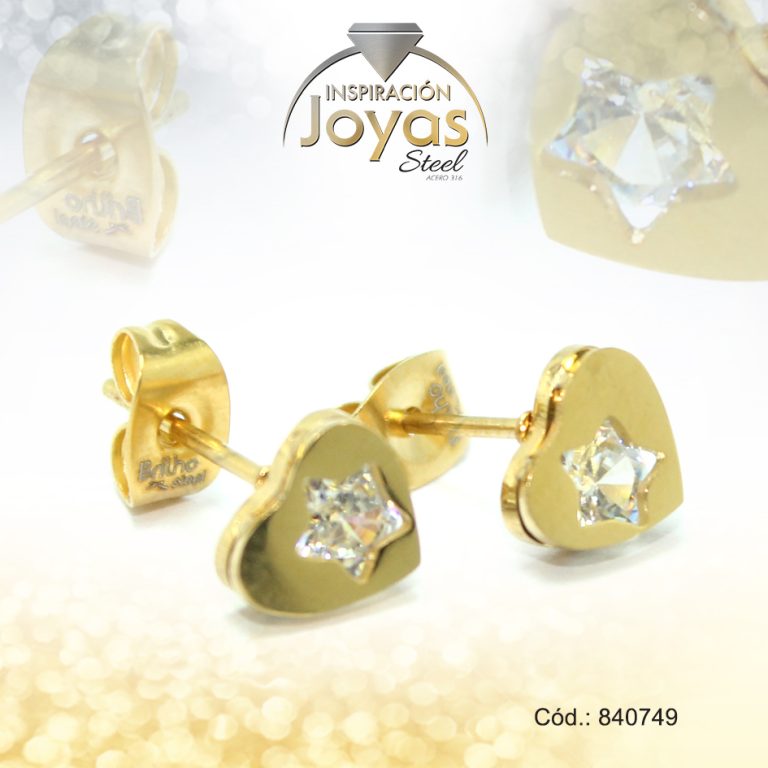 Zarcillo de Acero – Aleación Circón – Dorado – Corazón – 840749