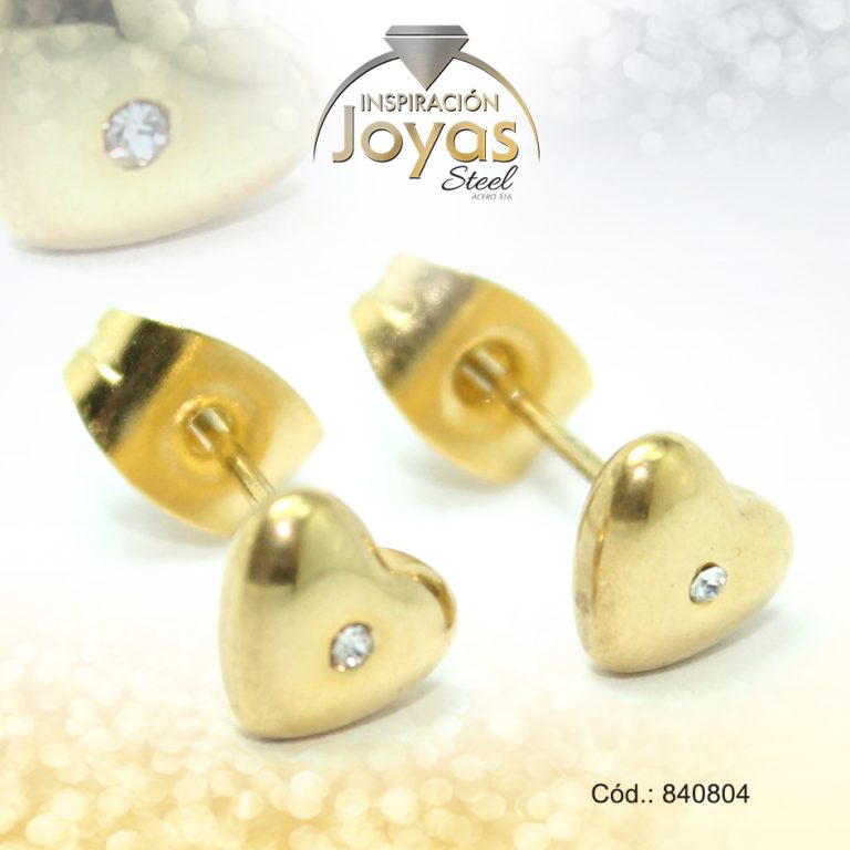 Zarcillo de Acero – Aleación Circón – Dorado – Corazón – 840748