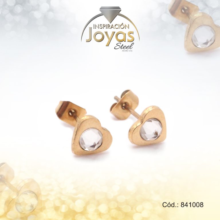 Zarcillo de Acero – Aleación Circón – Dorado – Corazón – 841008