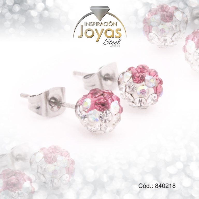 Zarcillo de Acero Esfera Micro Circón Plateado Blanco/Rosado – 840218